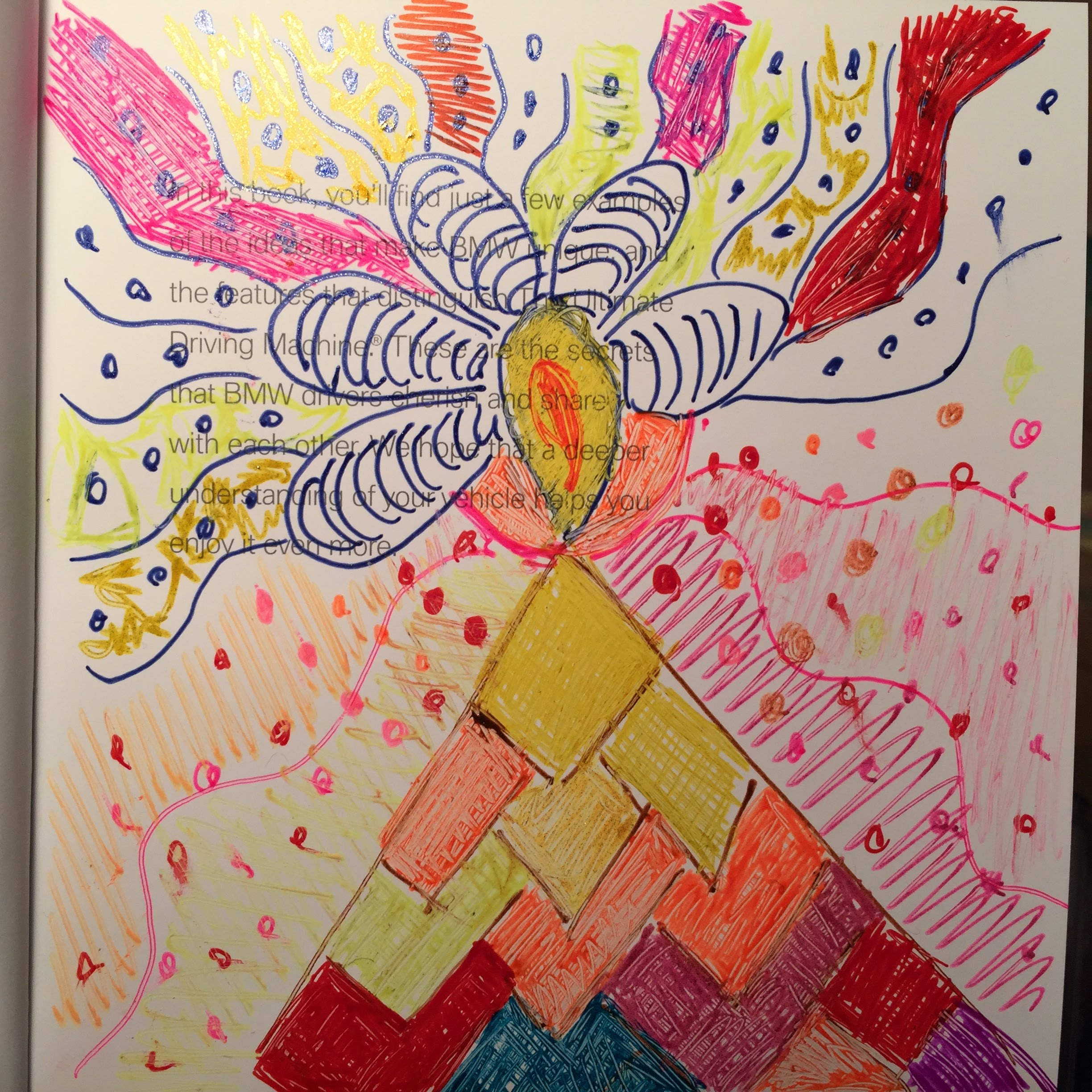 In an attempt to get at least some small amount of creativity into my day, and inspired by a stash of glitter and gel pens I decided to do a doodle a day. Combining that with an emotional literacy exercise by writing down my emotions of the day and coloring the doodle with them.