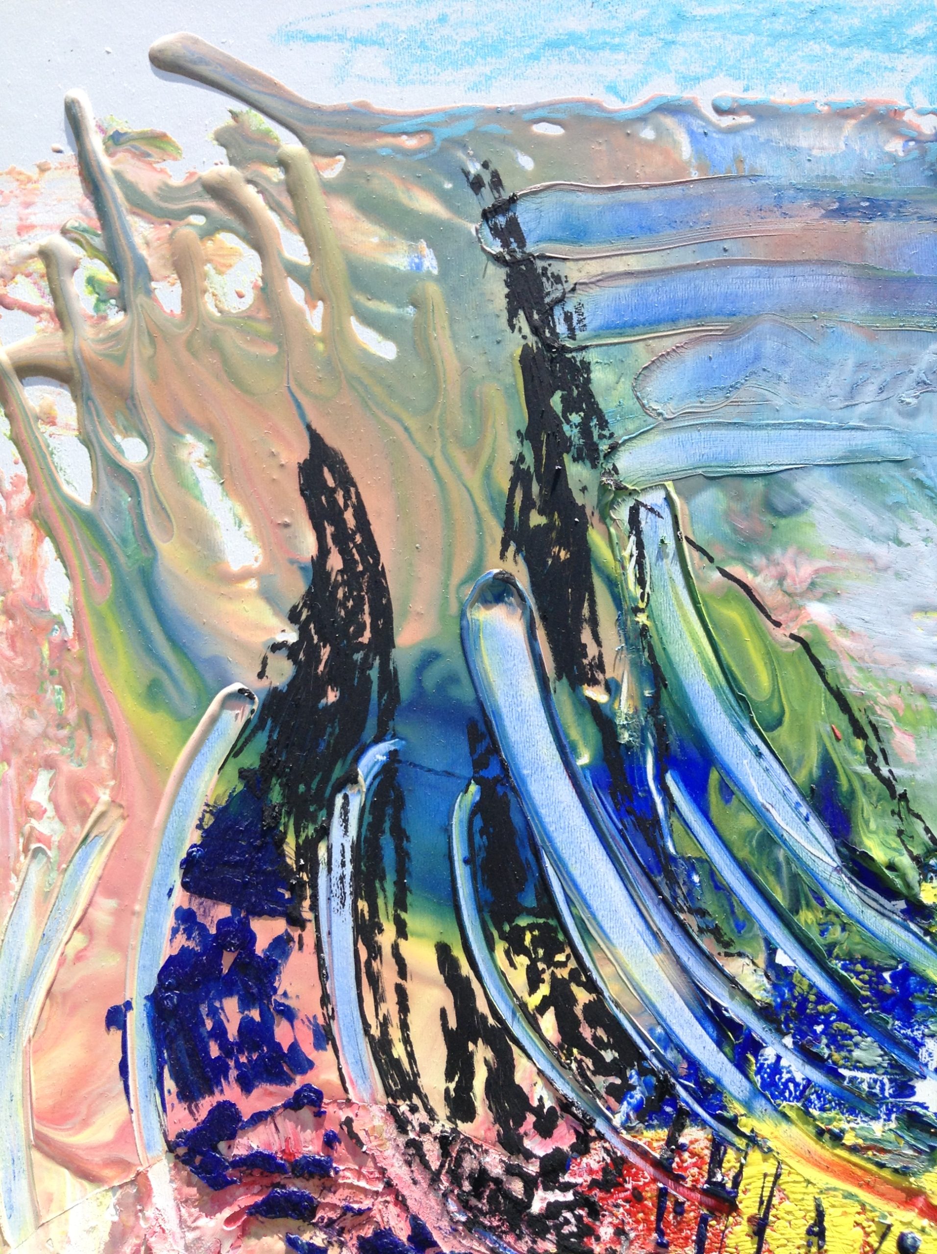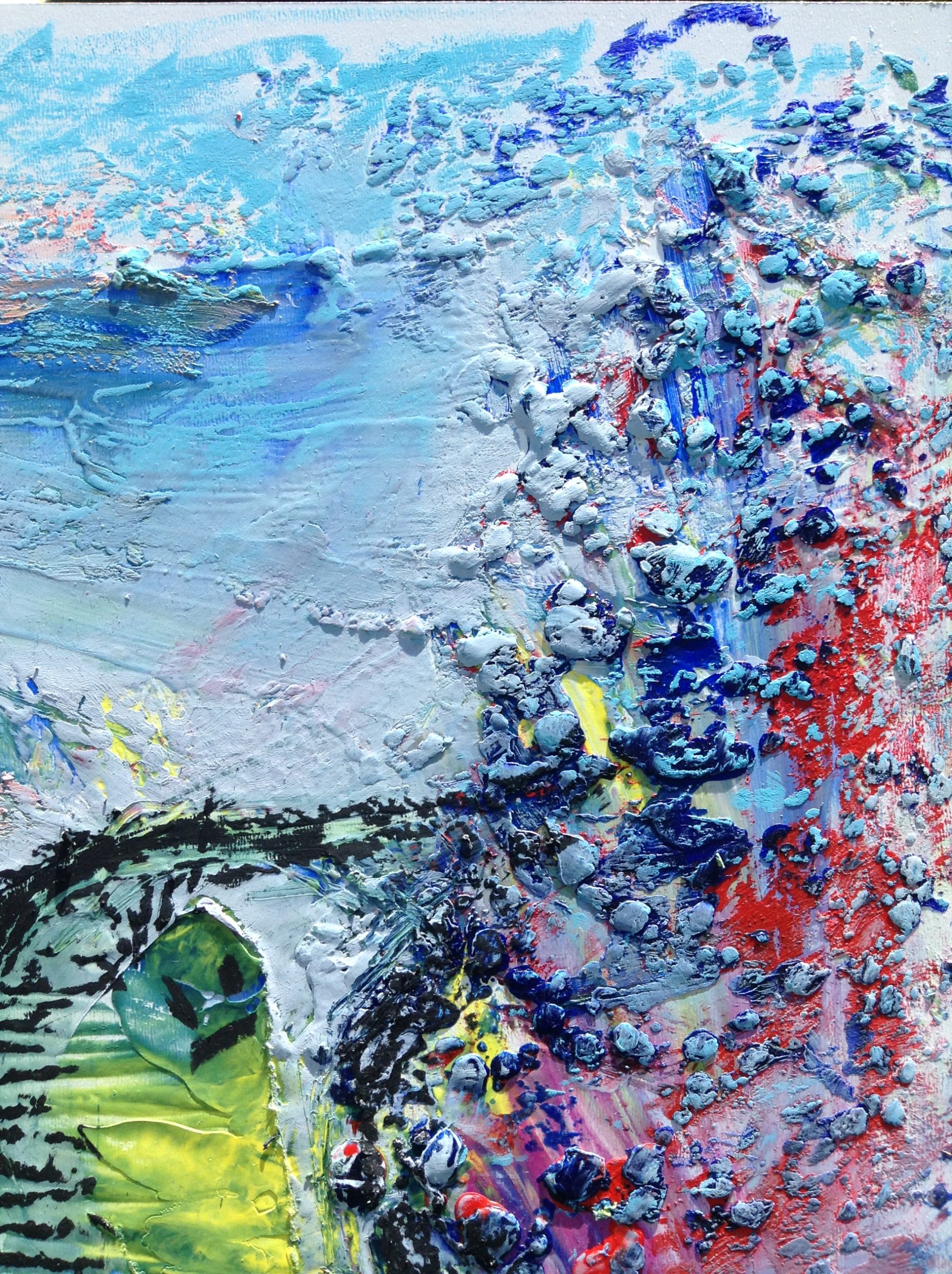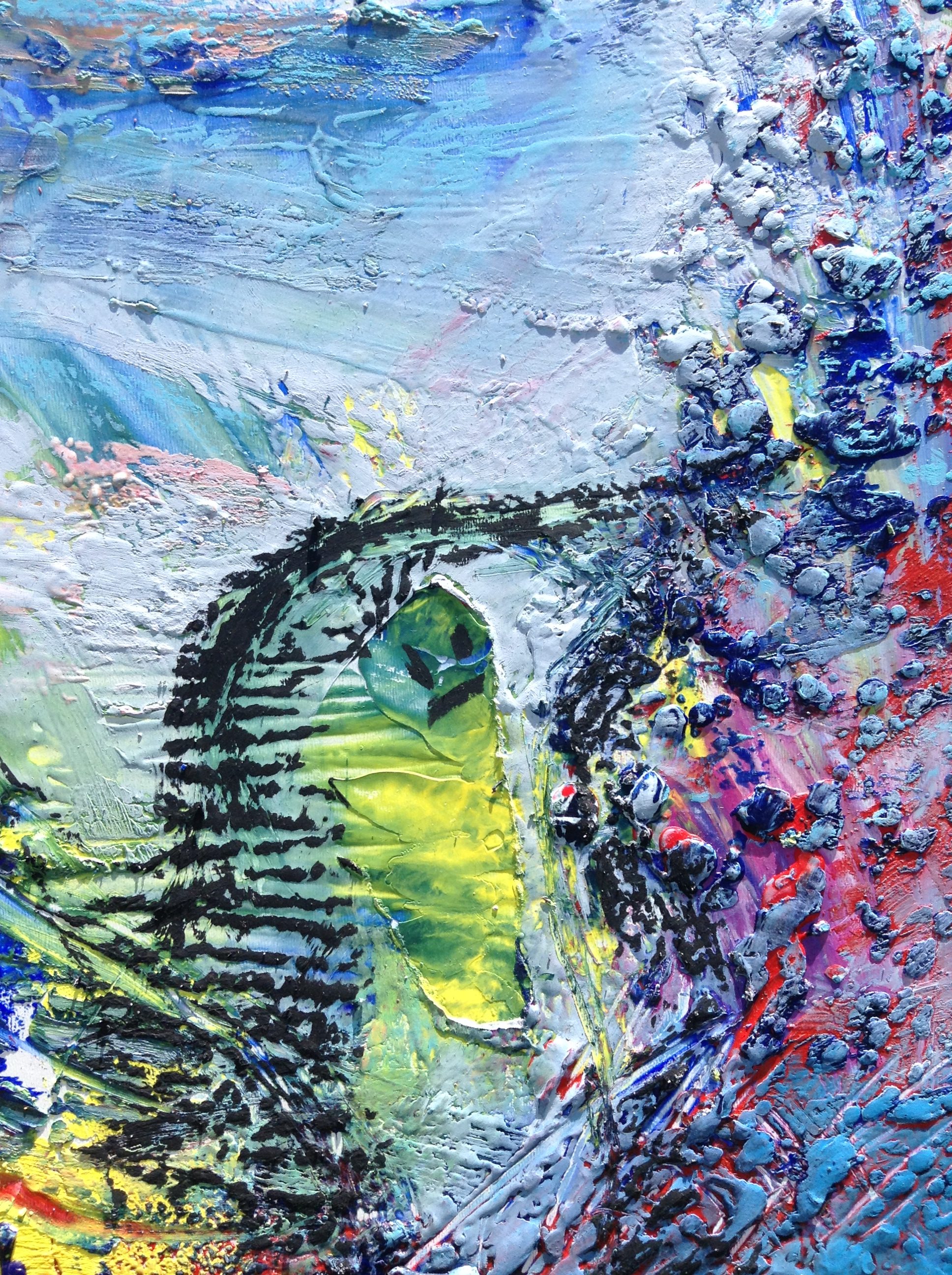 Painting with wax and pigments was so much fun but also a bit cumbersome with a lot more tools that acrylic paint requires. I didn’t do many paintings that way. This one I really love because I painted it as a reminder of a little bird I took care of until it could fly. I also love the intensity of the colors when using pigment mixed with wax. It was the perfect medium for the vibrant and colorful fledgling.