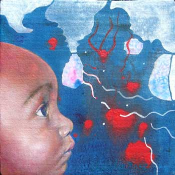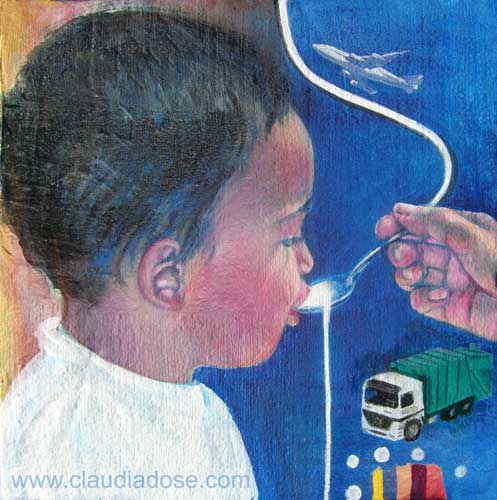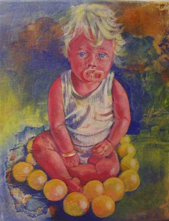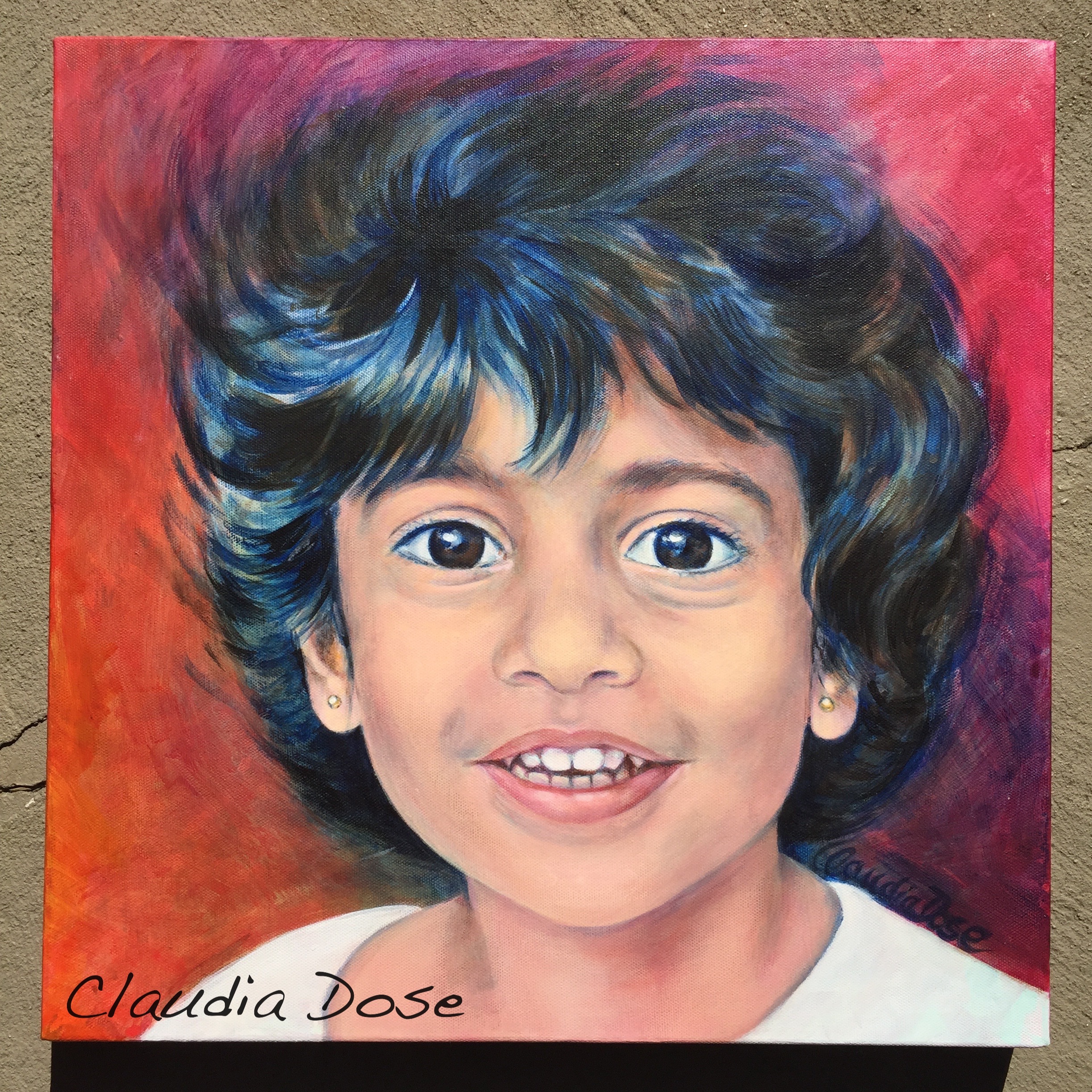 Years ago I was inspired to paint “Fragile” after reading about a mother smothering her child. Why would anybody but even more so a mother who gives birth to a child kill it? The image haunted me. A few years later I painted a portrait of our friend’s son after I saw his mother feeding him so lovingly. It stayed with me until I painted the image. A few years after that I painted their beautiful and fierce tantrum-prone daughter. Now while painting another portrait of toddler girl it had me reflect on the love of her mother to care as much as to have her painted.