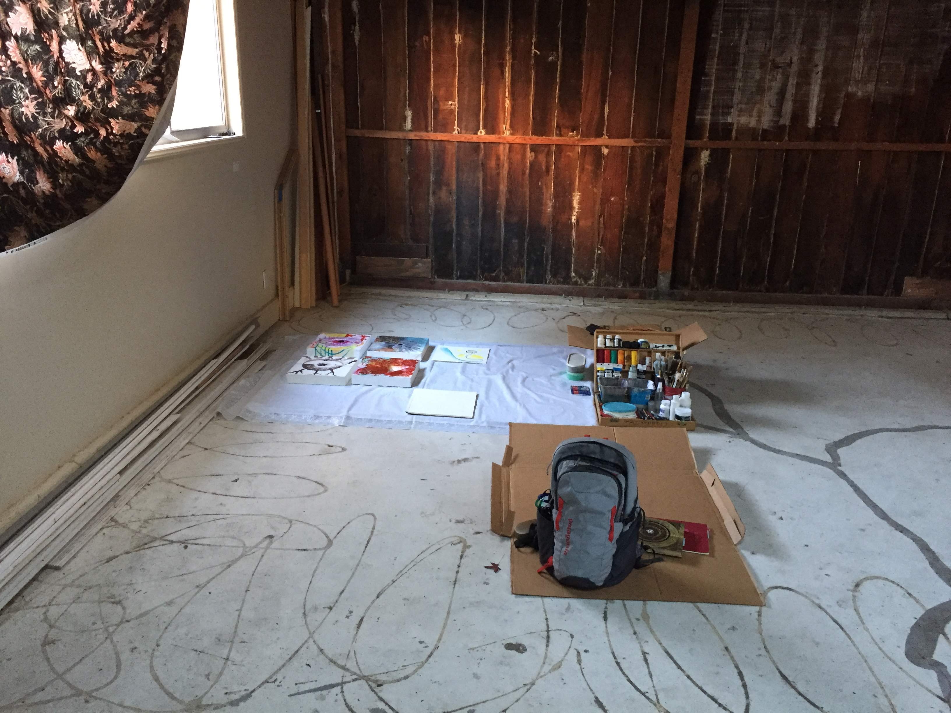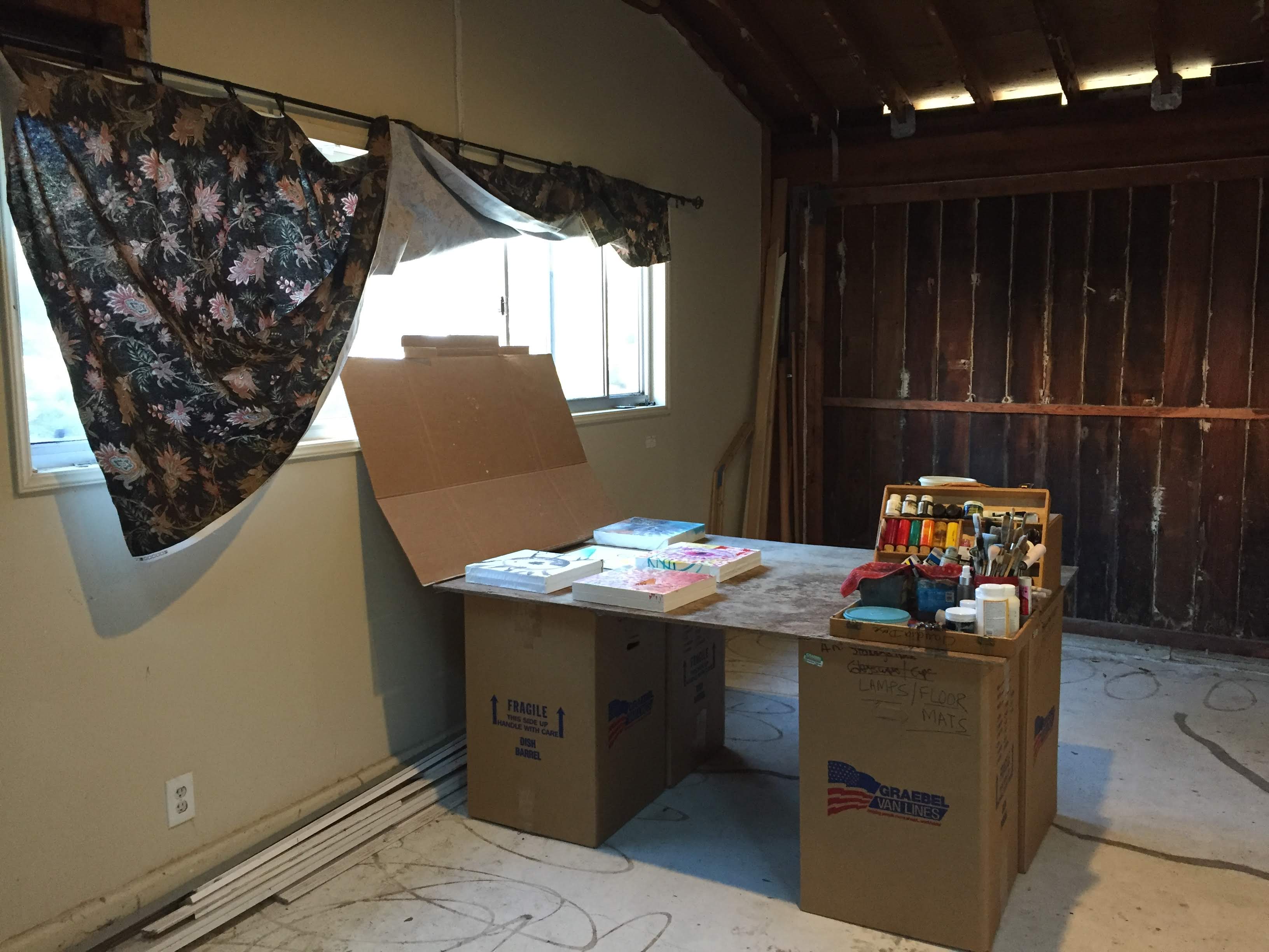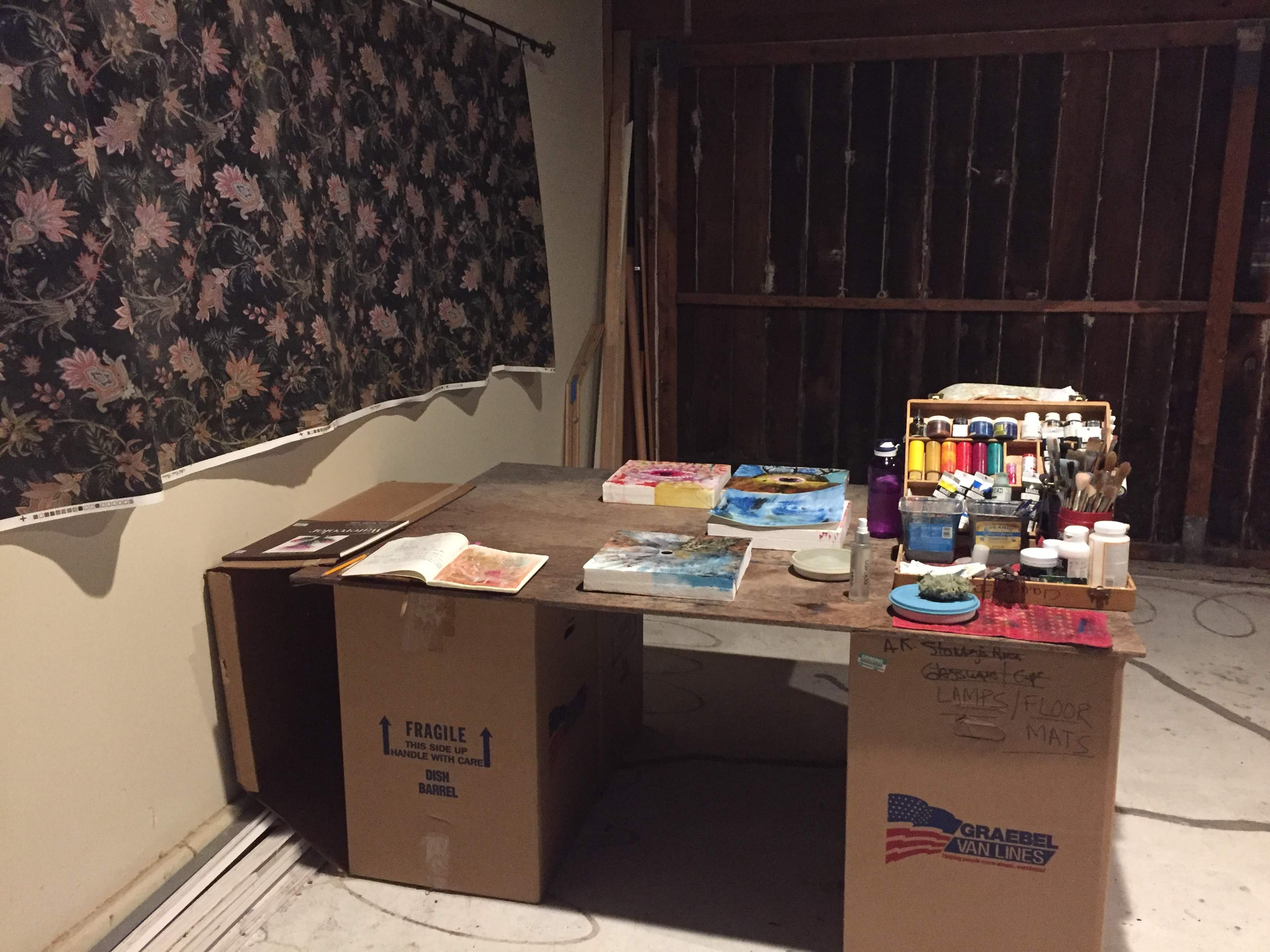 So I put a request out in our local neighborhood app, kind of like a desperate attempt without much hope. And was so surprised to actually find a kind soul that would share part of an unused garage with me, where I could put my weary head down and do what my soul was longing to do. Paint! Oh the joys!