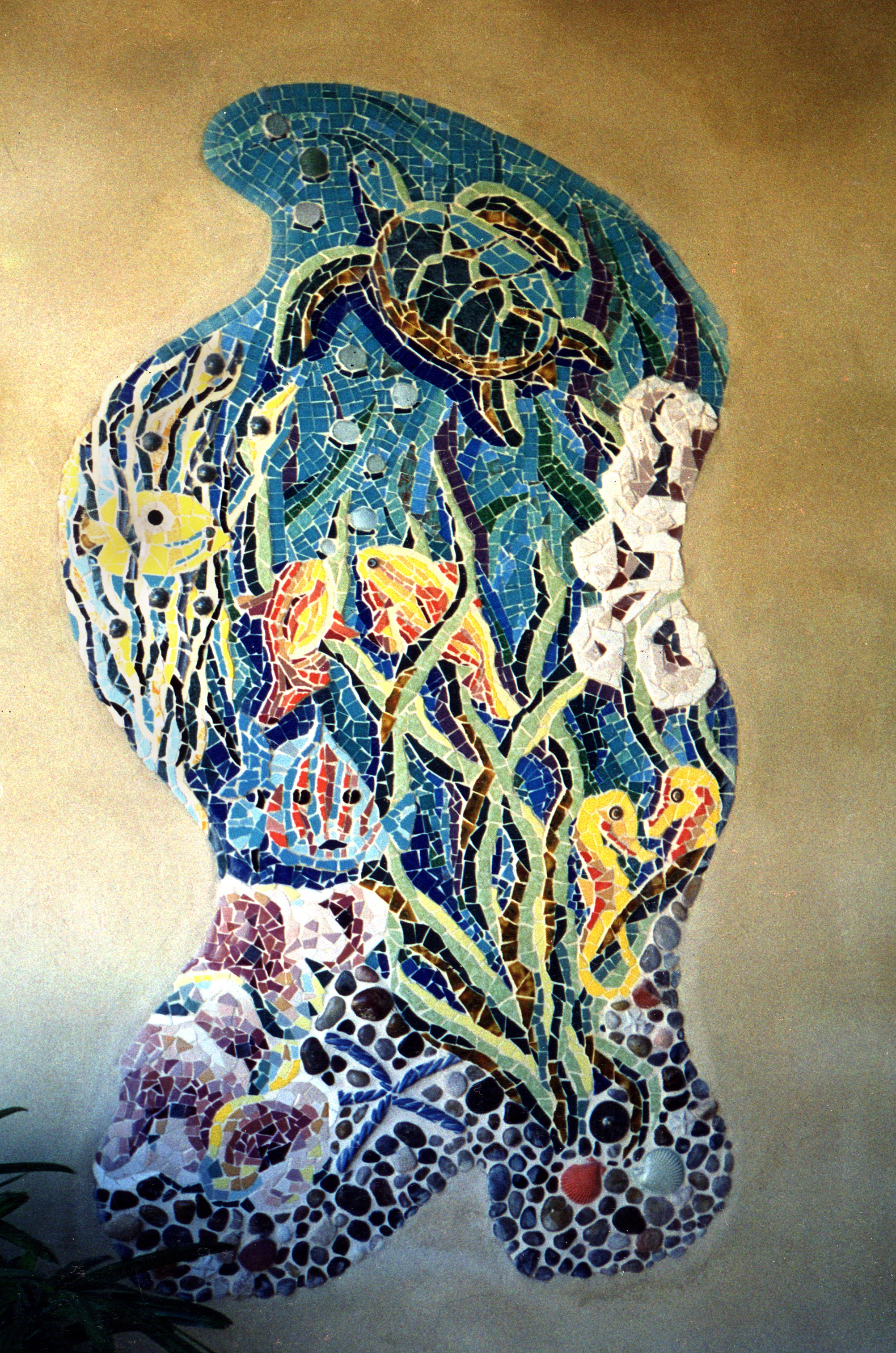 While living in Australia from 1996-2000 I worked with mosaics. Inspired by the pretty off-cuts from my partner’s tiling business and beautiful old ceramic tiles from old kitchens we had to demolish, I attended a class in Sydney to learn how make mosaics and created my first glass mosaic the “coffee cup”. After that many more mosaics followed until I created a large mural “aquarium” for the entrance of the private residence of the architect of the Sydney aquarium. It was a good excuse to visit the aquarium many times, I loved it.