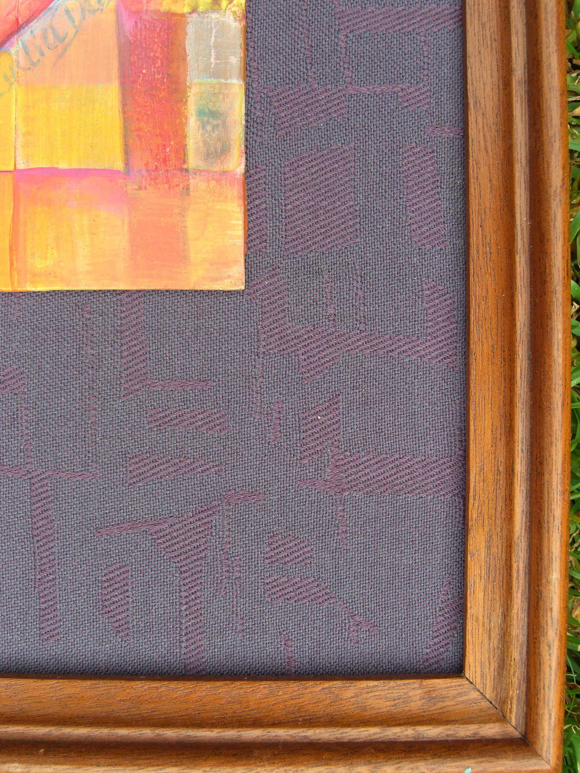 The mat surrounding the painting is from a Jacquard fabric that I designed (way back working in Switzerland). The pattern becomes more visible when the light is shining at a particular angle.